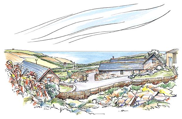 Blegberry Holiday CottagesBlegberry is a 500 acre working beef, sheep and arable farm run by the Olde family which is set on the unspoilt cliffs of Hartland overlooking the Atlantic towards Lundy Island. The farm offers a range of high quality self catering accommodation including the barns illustrated above. The cliffs below Blegberry were recently used as the location for the filming of the final scenes of King Arthur. Buy Prints .......... Buy Originals .......... Commission a Drawing .......... About Mark Nesbitt .......... Contact Details |